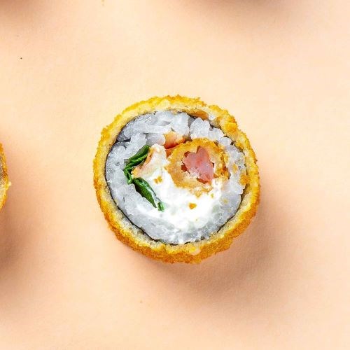 креветка, копченый угорь, сыр филадельфия, соус спайси, лук зеленый, 608 ккал.