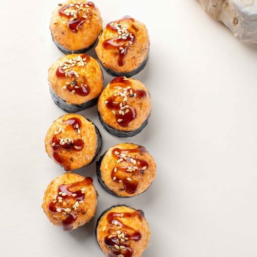 сыр филадельфия и авокадо, под фирменной шапочкой на основе копченого угря, лосося и снежного краба, 760ккал