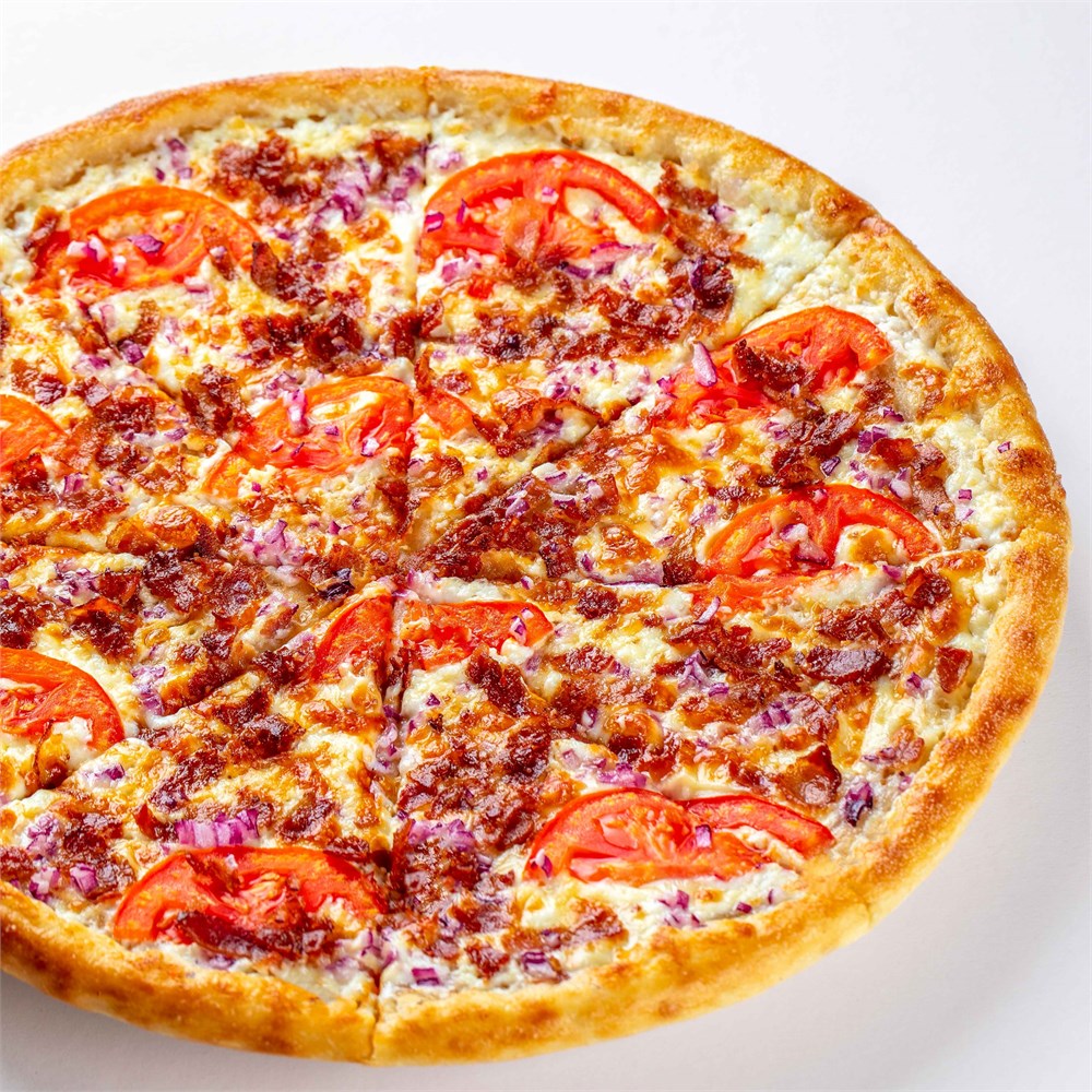 сыр моцарелла, жареный бекон с красным лукоми помидорами, 1435 ккал.